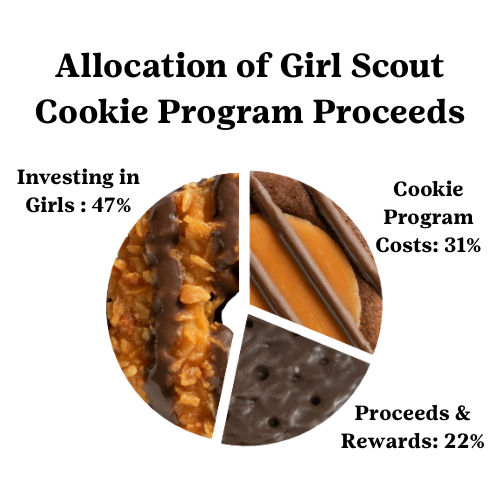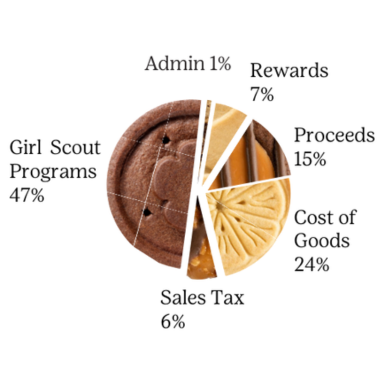 All proceeds earned in the Cookie Program stay local! Because of the Cookie Program, Girl Scouts of Silver Sage Council is able to offer events like STEM Day, True North in a Day, Badge Workshops, Summer Camp, and more! When girls and troops participate in the Cookie Program, all Girl Scouts benefit! Each Girl Scout Council has a slightly different breakdown of “how the cookie crumbles”, at Silver Sage our breakdown looks like this: